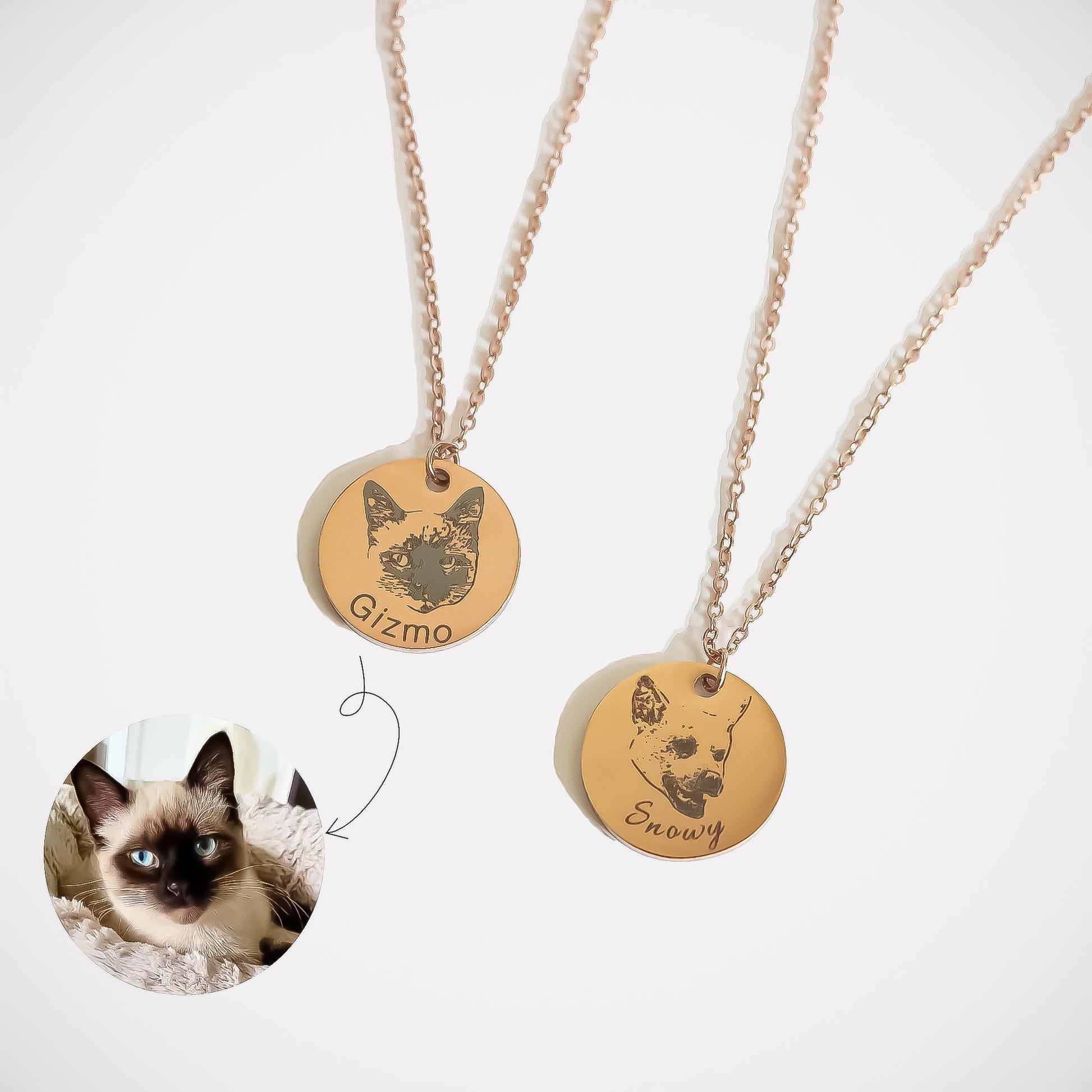 Celebrate what you cherish most with our custom necklace. Designed to showcase your pet's face and their name intricately engraved below.