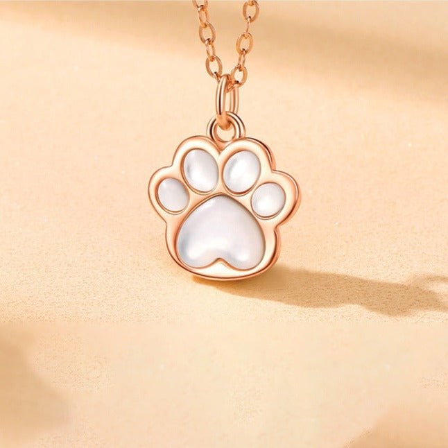 Planethousepet™ Mother Of Pearl Sliver Sweet Cat Paw Necklace